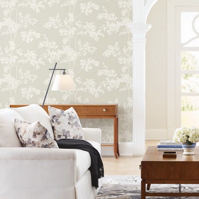 York Wallcovering Light Taupe And White Lunaria Silhouette Wallpaper